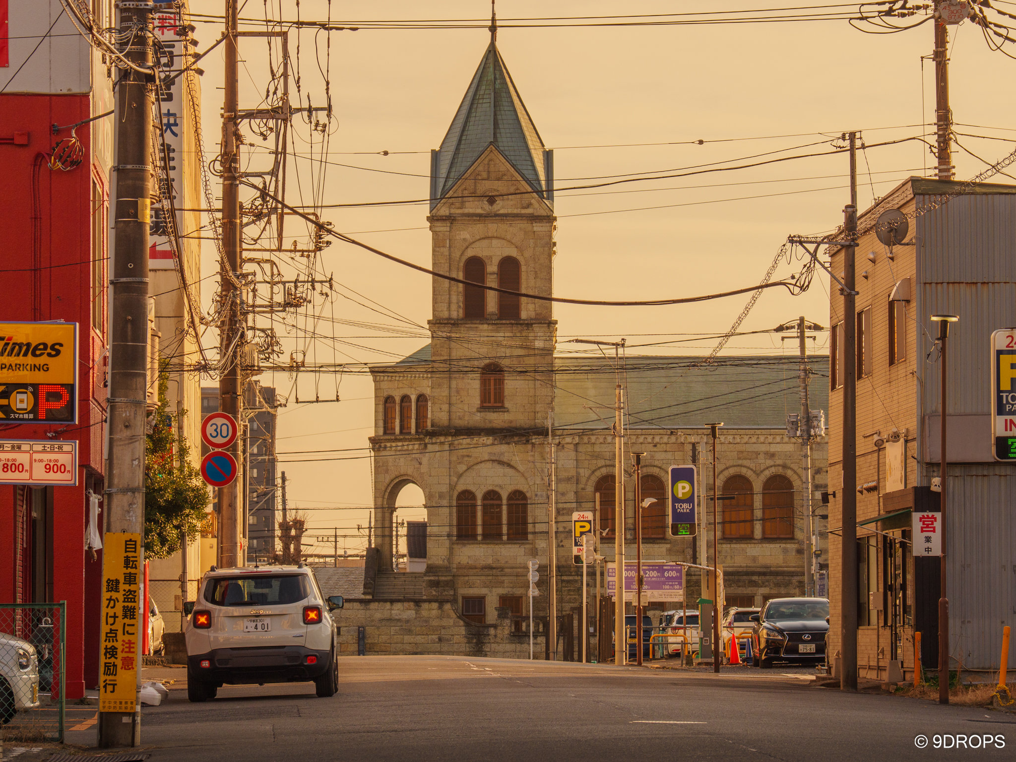 ちょうど夕暮れ時で、退廃的な空気感漂う宮園町の、ラブホ越しに見える松が峰教会が美しすぎて、何ともシュールである。